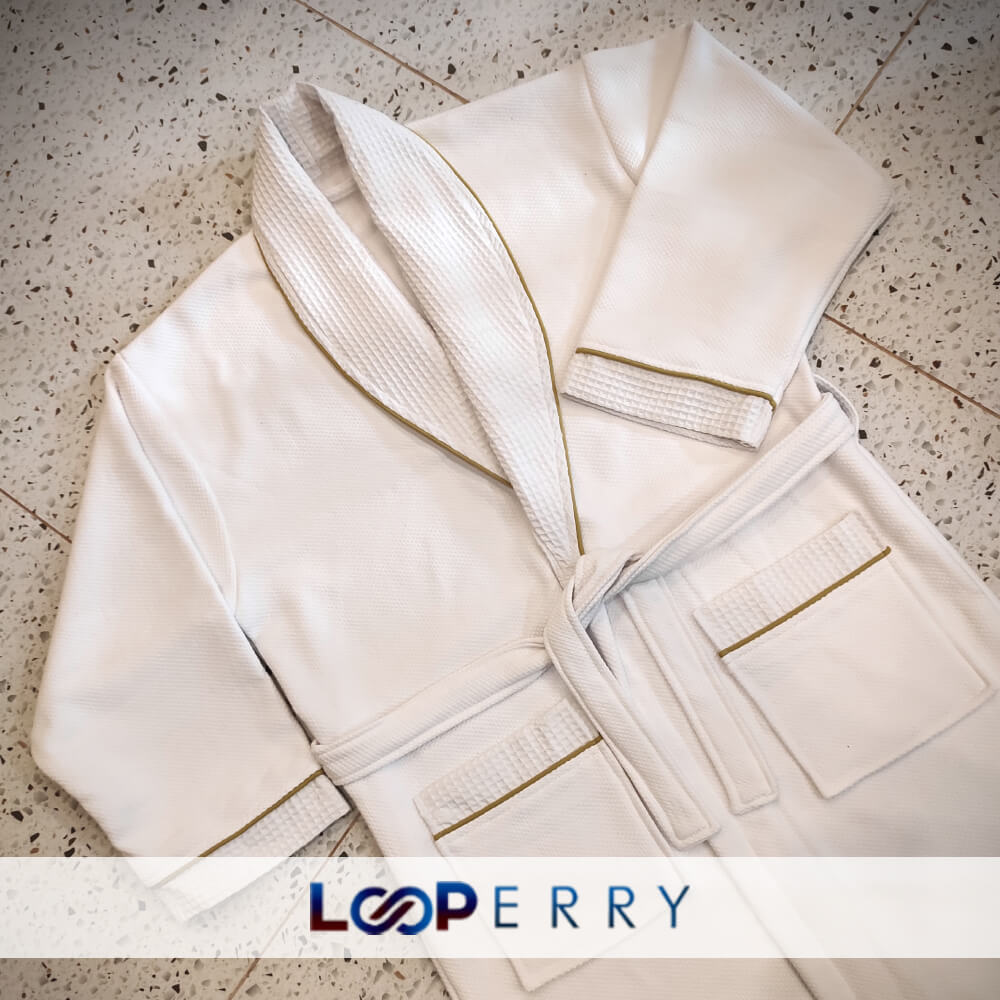 Be the first to review “Combed Cotton Terry Waffle Bathrobe With Satin Gold Color Piping”